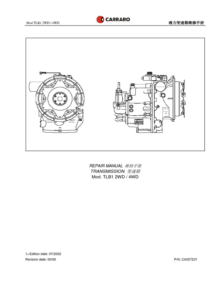 Carraro Transmission TLB2 CD4WD Repair Manual CA357657 PDF DOWNLOAD
