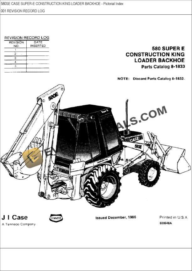 Case 580E & 580 Super E Tractor Loader Backhoe Parts Manual Catalog