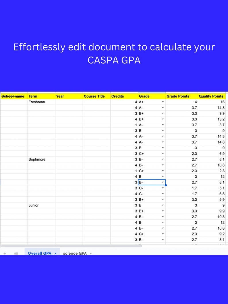 CASPA GPA Calculator for PA School Google Sheets, Template, Edit Etsy