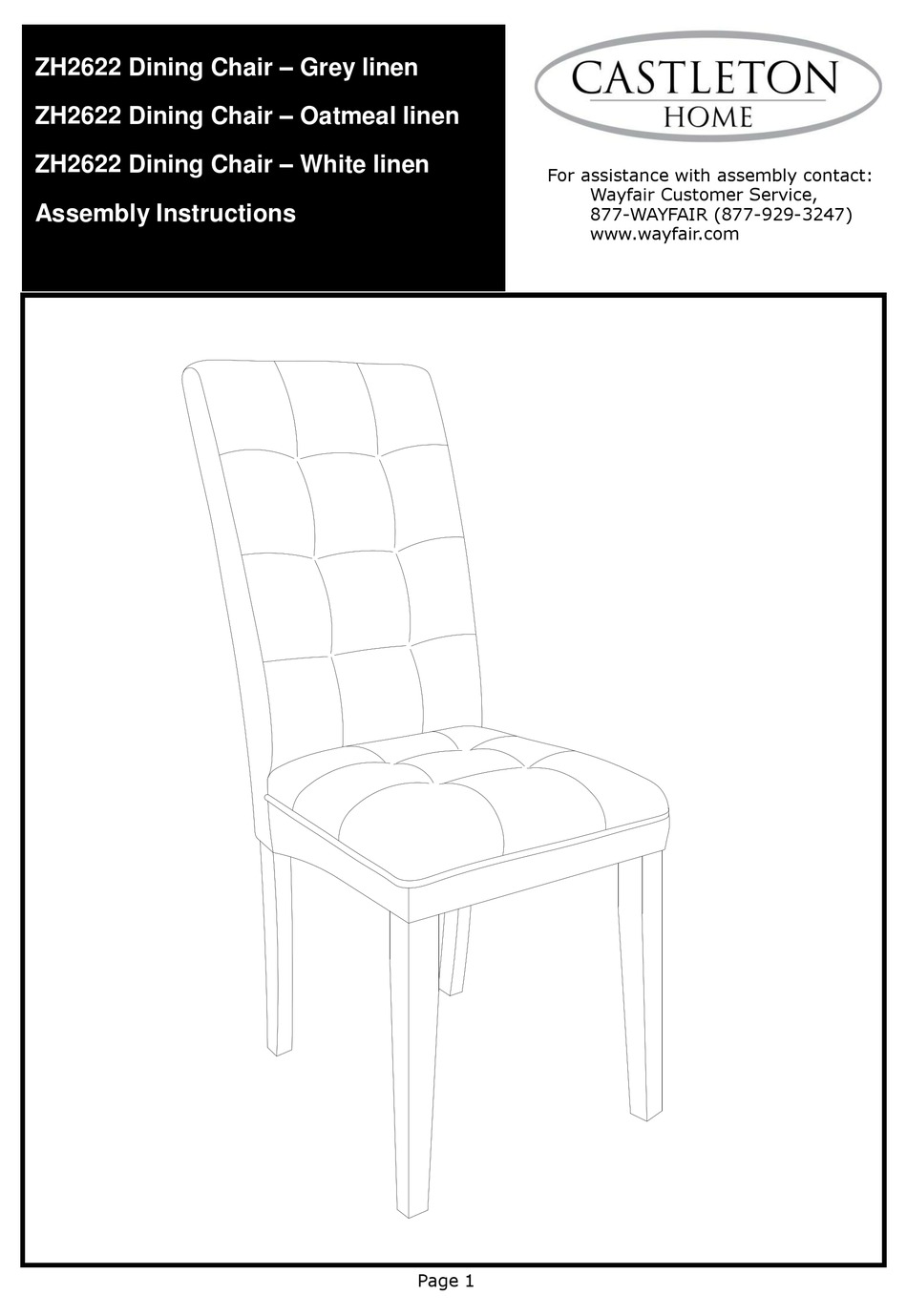 CASTLETON HOME ZH2622 ASSEMBLY INSTRUCTIONS Pdf Download ManualsLib