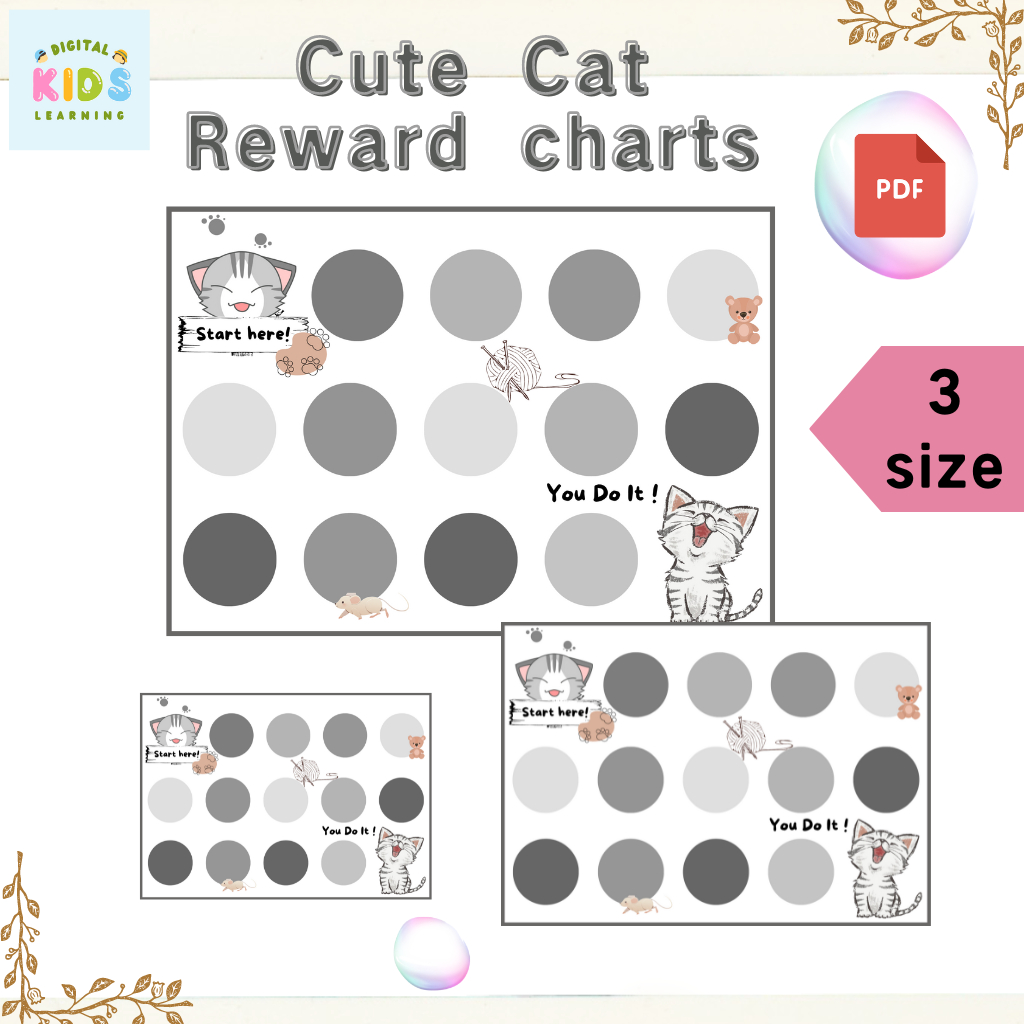 Cute Cat Reward Chart, Sticker Chart, Toddler, Preschool Kids, Letter