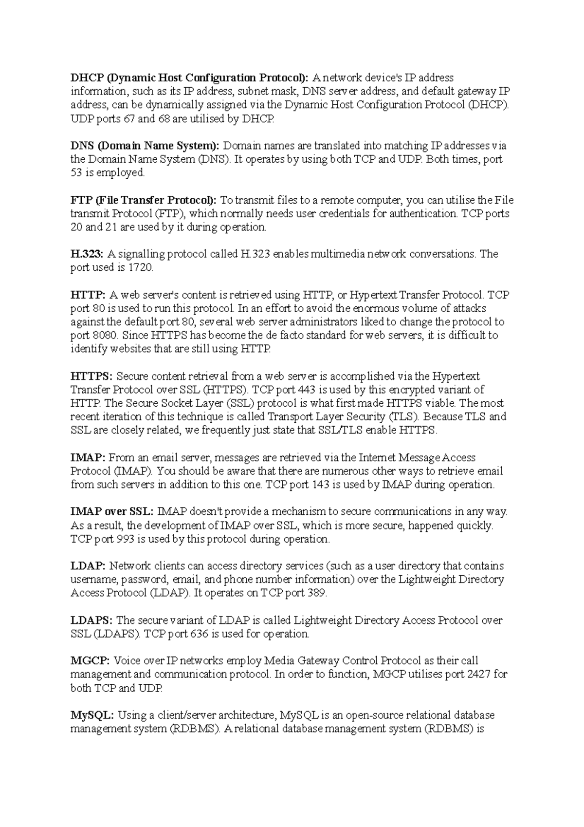 Common ports ad Protocol DHCP (Dynamic Host Configuration Protocol