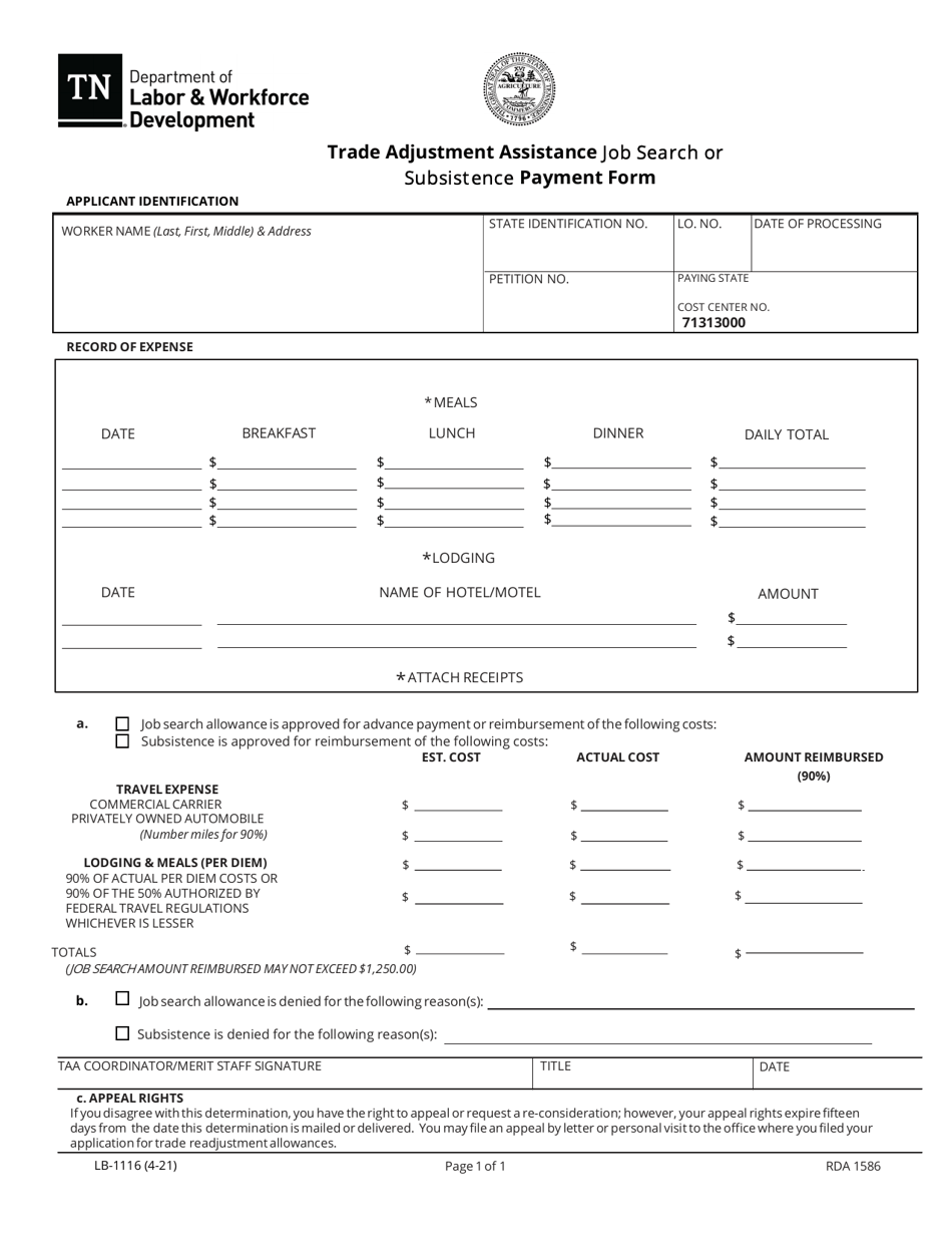 Form LB1116 Download Fillable PDF or Fill Online Job Search Payment