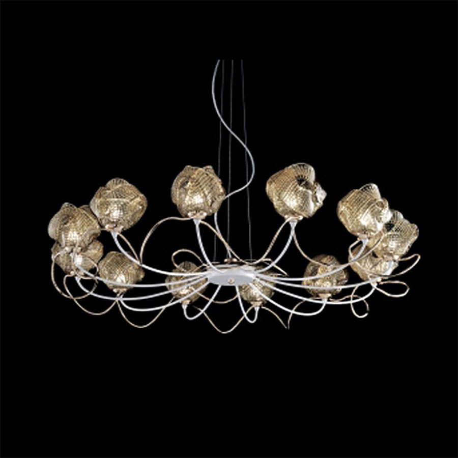 Luminaire suspendu plafonnier métal et cristal artistique chrome argent