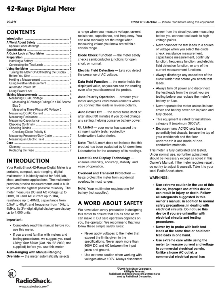 Multímetro Digital RadioShack 42Range PDF Alternating Current