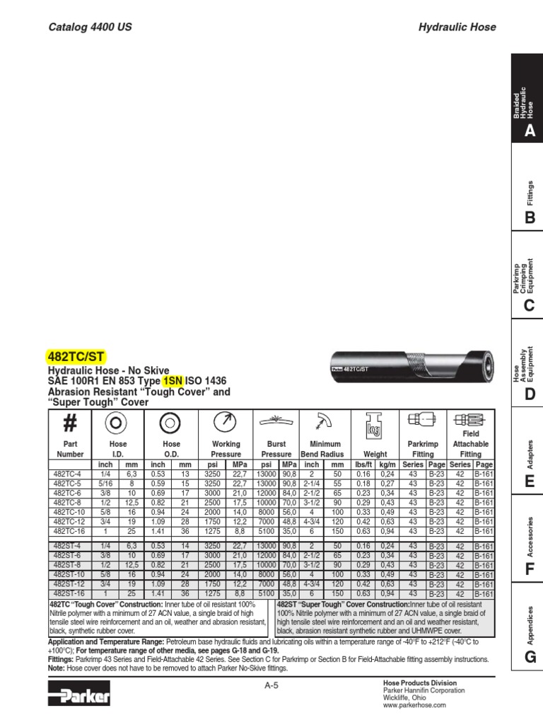 482TC/ST Catalog 4400 US Hydraulic Hose PDF Chemical Substances