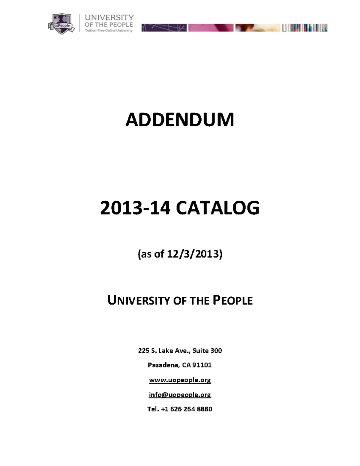 Addendum to 20132016 College Catalog