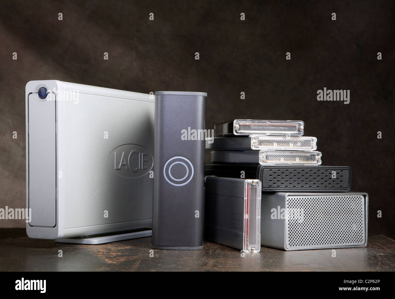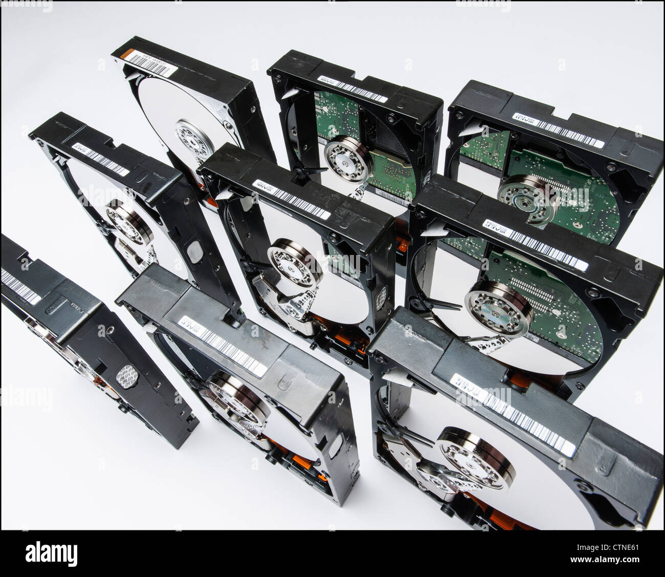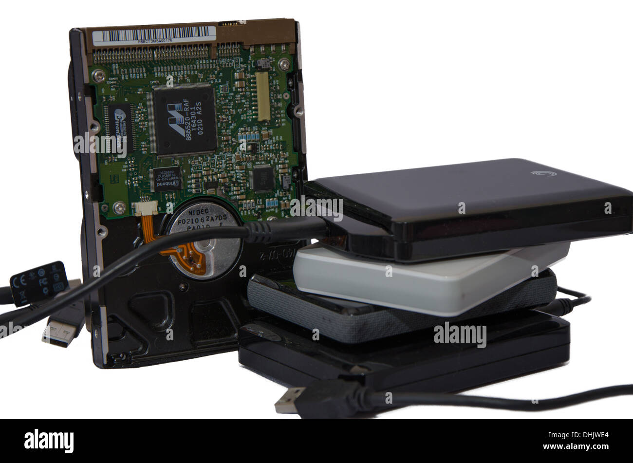 Hard disk drive HDD of different size isolated on white. Detailed view