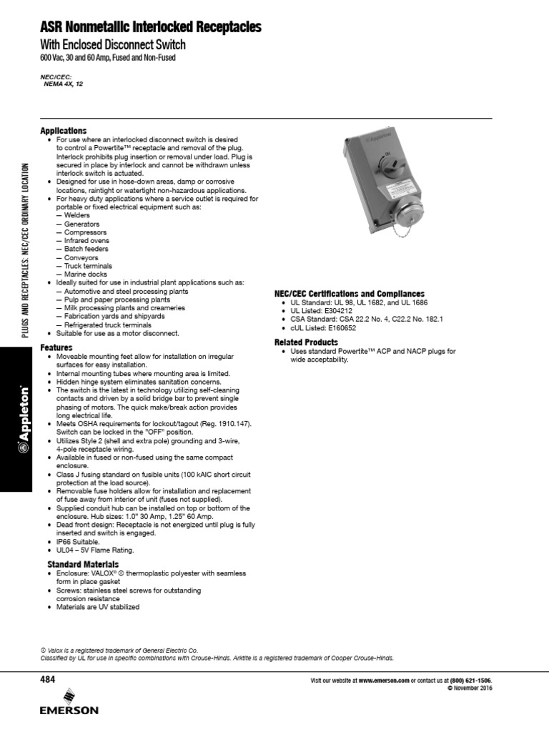 Catalog Pages Appleton FSQC 3060100 Amp Series Receptacles Powertite