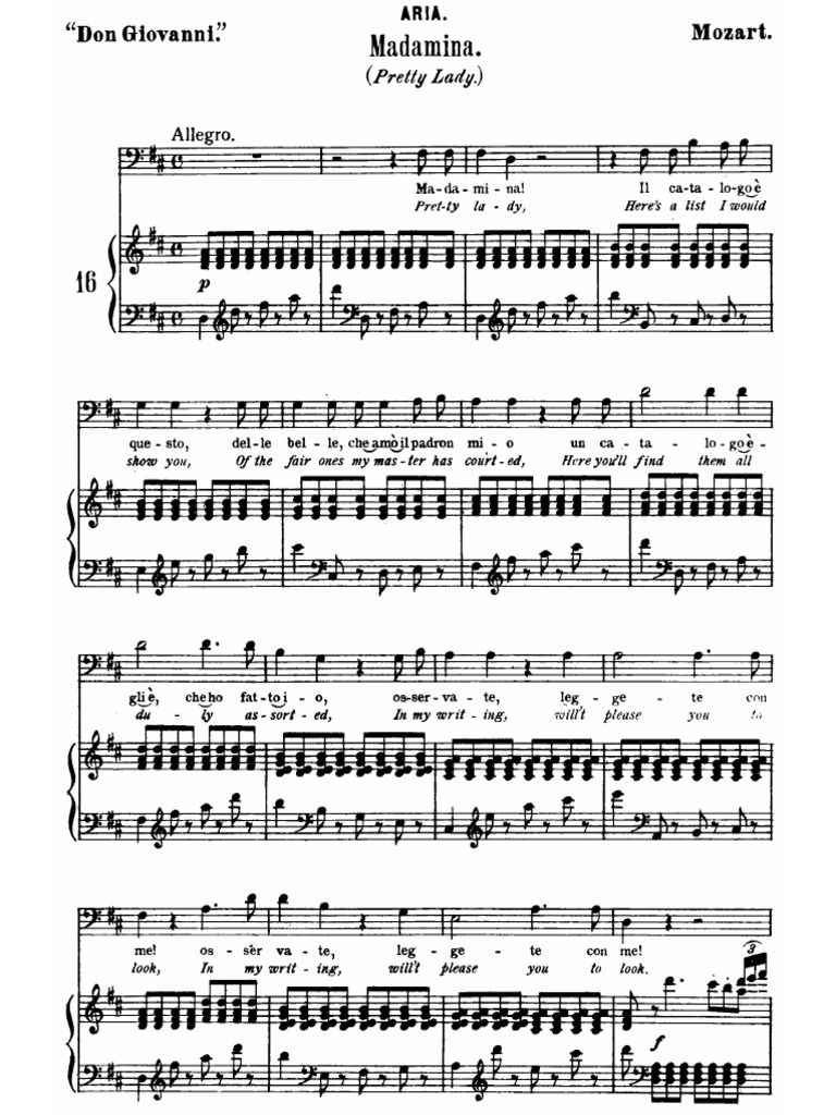 Don Giovanni Madamina, il catalogo è questo (Catalogue Aria