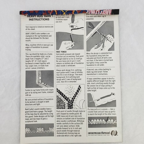 Aunt Lydia's Punch Needle Rug Kit Vintage DIY Wall Hanging