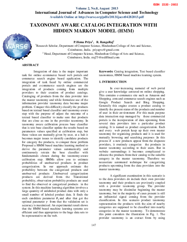 (PDF) TAXONOMY AWARE CATALOG INTEGRATION WITH HIDDEN MARKOV MODEL (HMM)
