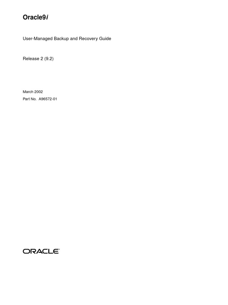 Oracle 9i UserManaged Backup and Recovery Guide PDF Oracle