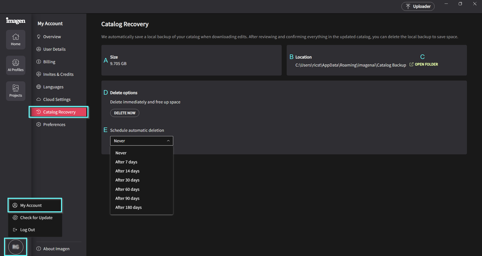 Deleting Catalog Backup Files