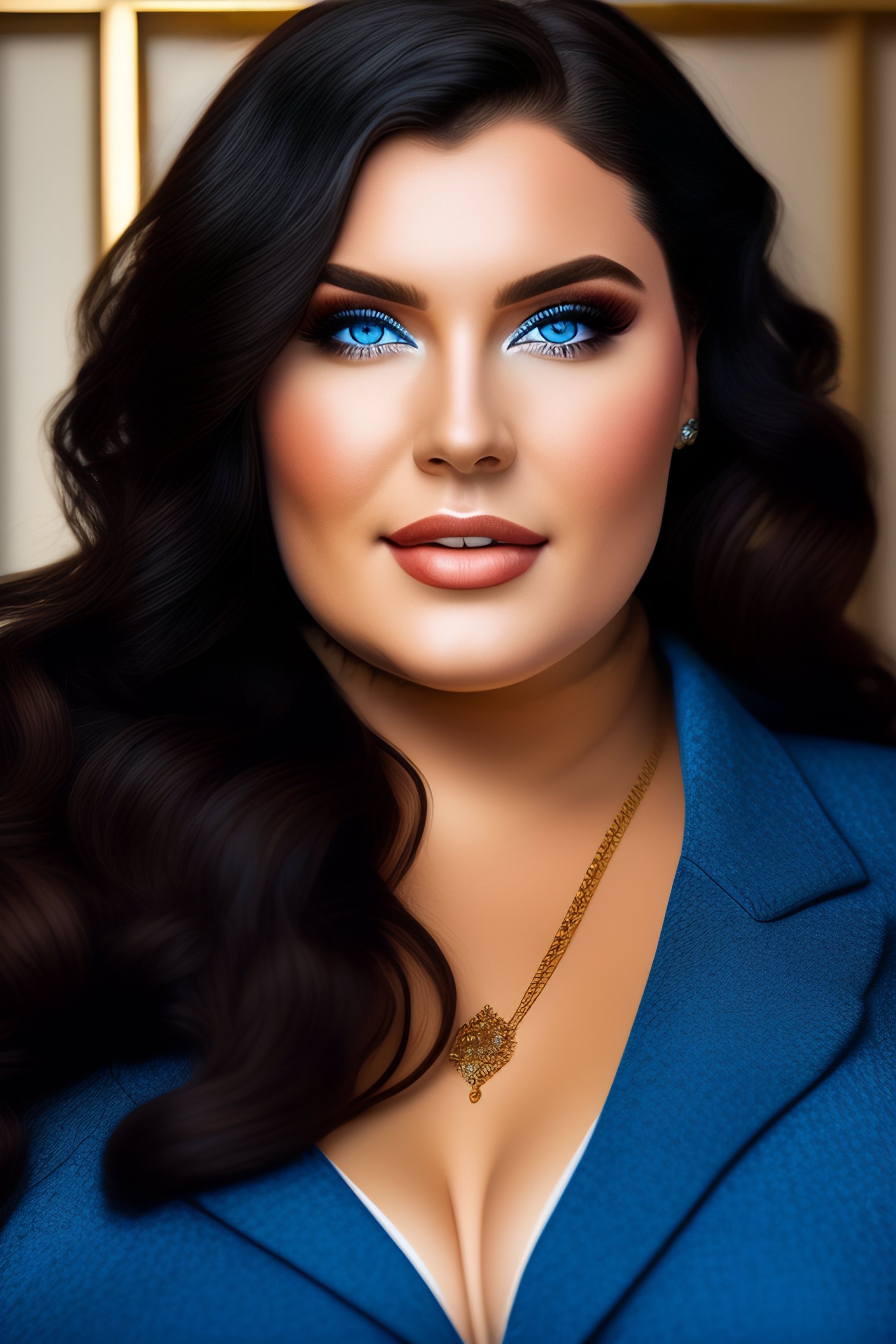 Lexica Beautiful russian woman, plus size, black hair, blue eyes