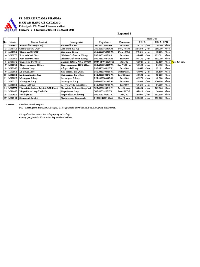 Pt. Merapi Utama Pharma Daftar Harga EKatalog Bpjs Prinsipal PT