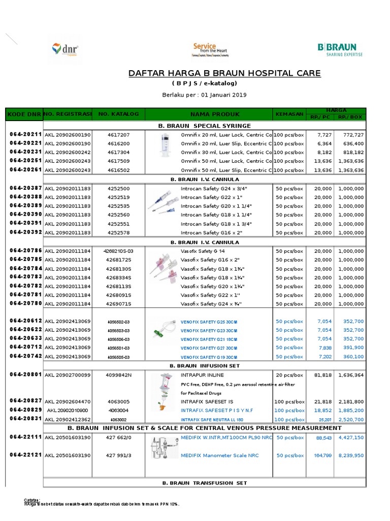 Daftar Harga BPJS EKatalog OPM 2019 PDF Syringe Medical Equipment