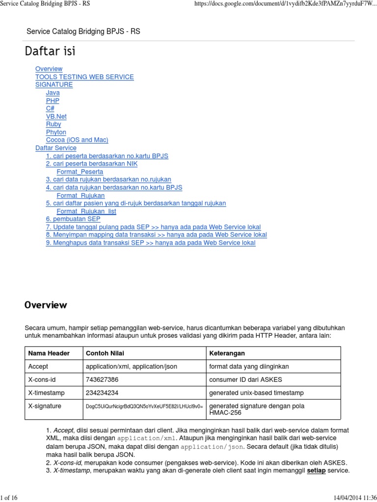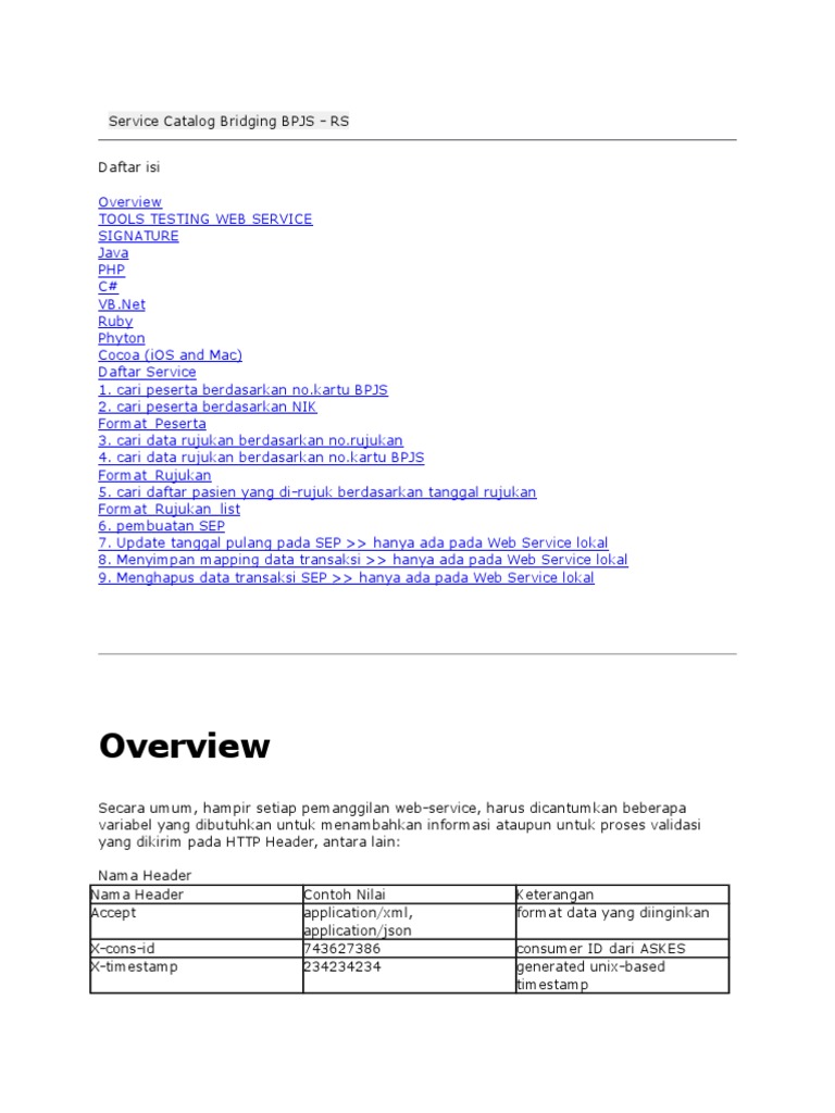 Service Catalog Bridging BPJS RS PDF Bisnis Pengelolaan