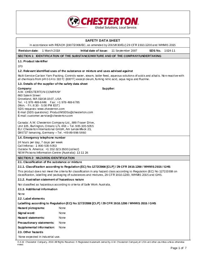 Chesterton Packing and Gasket Catalogue PDF Fluorine Lubricant