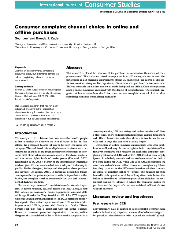 (PDF) Consumer complaint channel choice in online and offline purchases