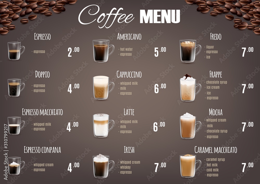 Coffee drinks menu price list vector template Stock Vector Adobe Stock