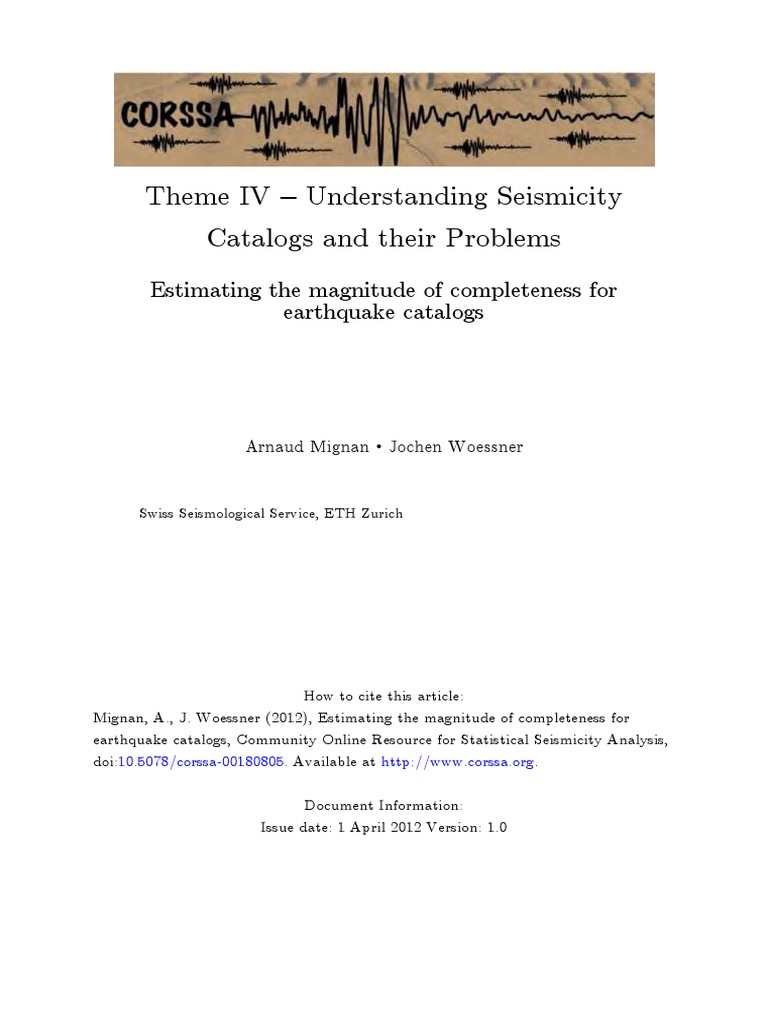 Seismicity Catalog Completeness PDF Moment Magnitude Scale