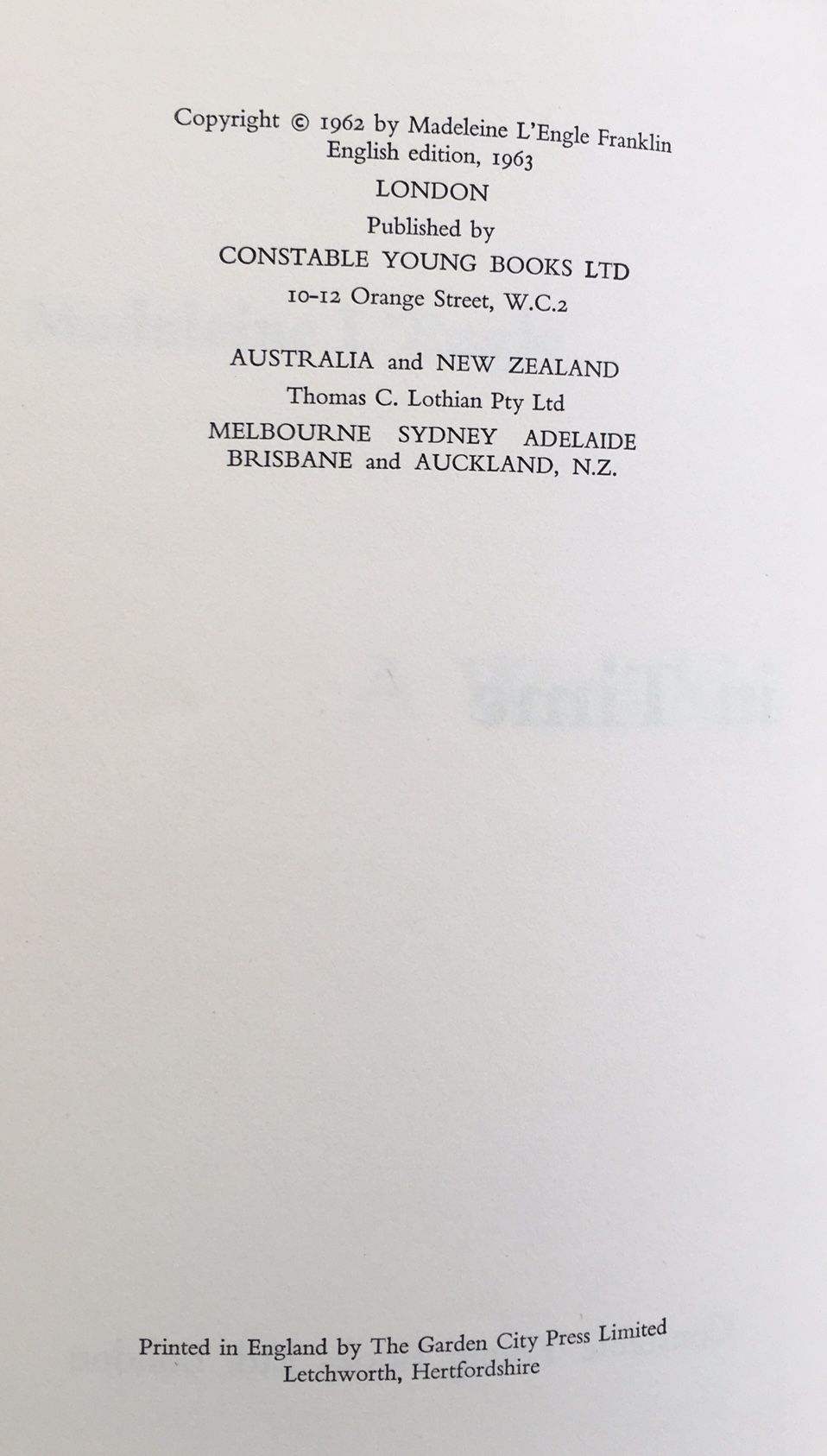 A Wrinkle in Time by L'Engle, Madeleine 1963 Constable Young Books
