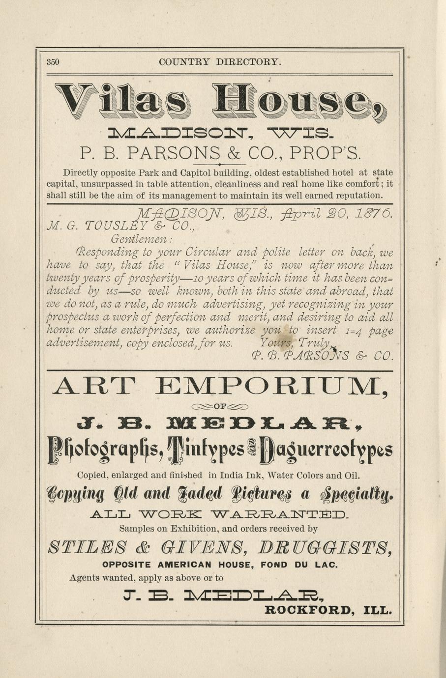 Centennial 1876 directory of Fond du Lac County, Wisconsin, containing