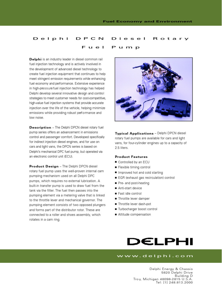 Delphi DPCN Injection Pump Brochure (2004) PDF Diesel Engine Engines