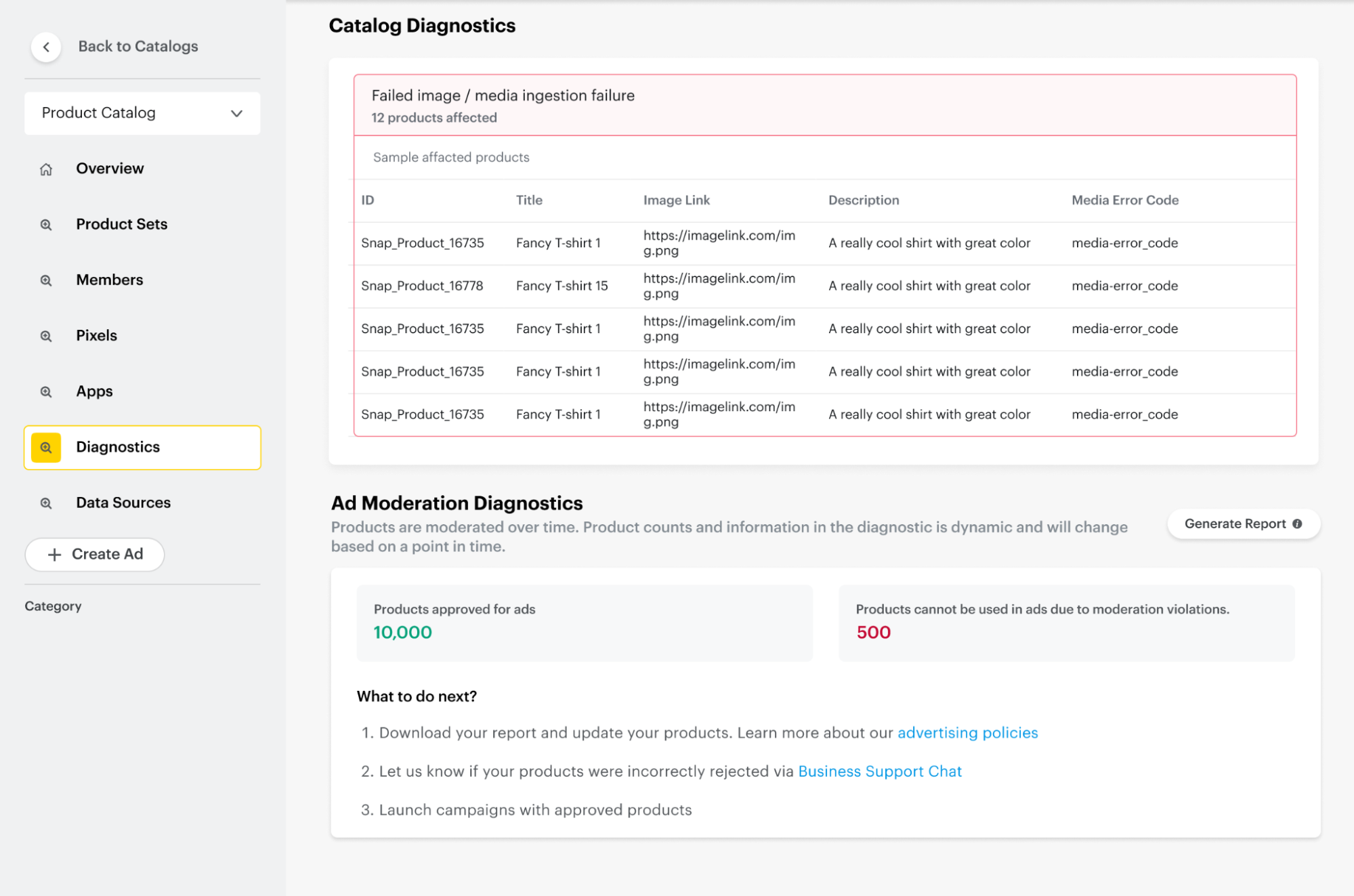 Catalog Diagnosticson