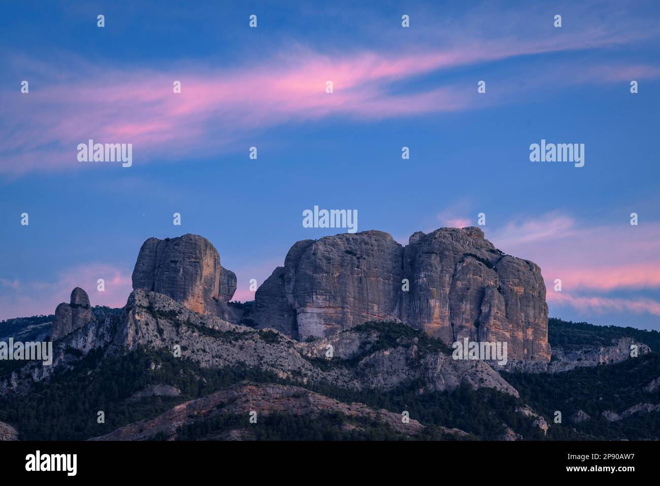 Coucher de soleil printanier sur les rochers des Roques de dans