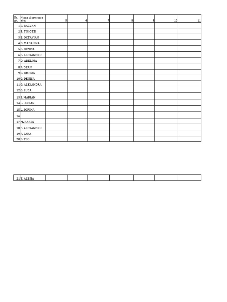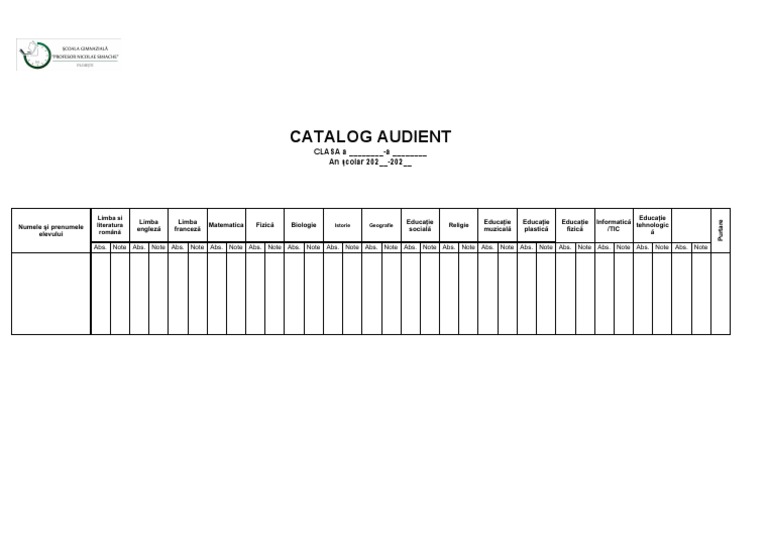 Catalog pentru învatamantul gimnazial (clasele VVIII), 39 elevi