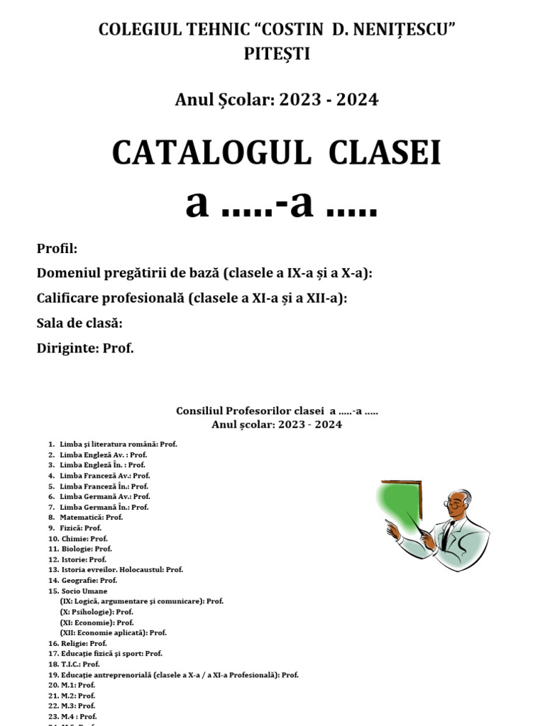Catalogul clasei (ucenici, scoli profesionale, scoli de arte si meserii