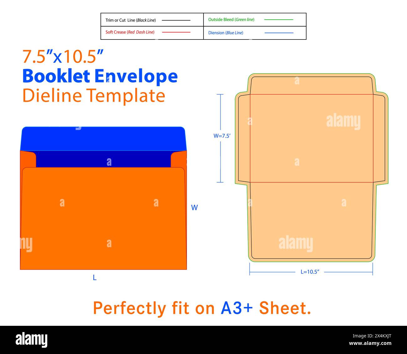 Booklet Envelope W 7.5, L 10.5 Inches Die line Template. Overall, a
