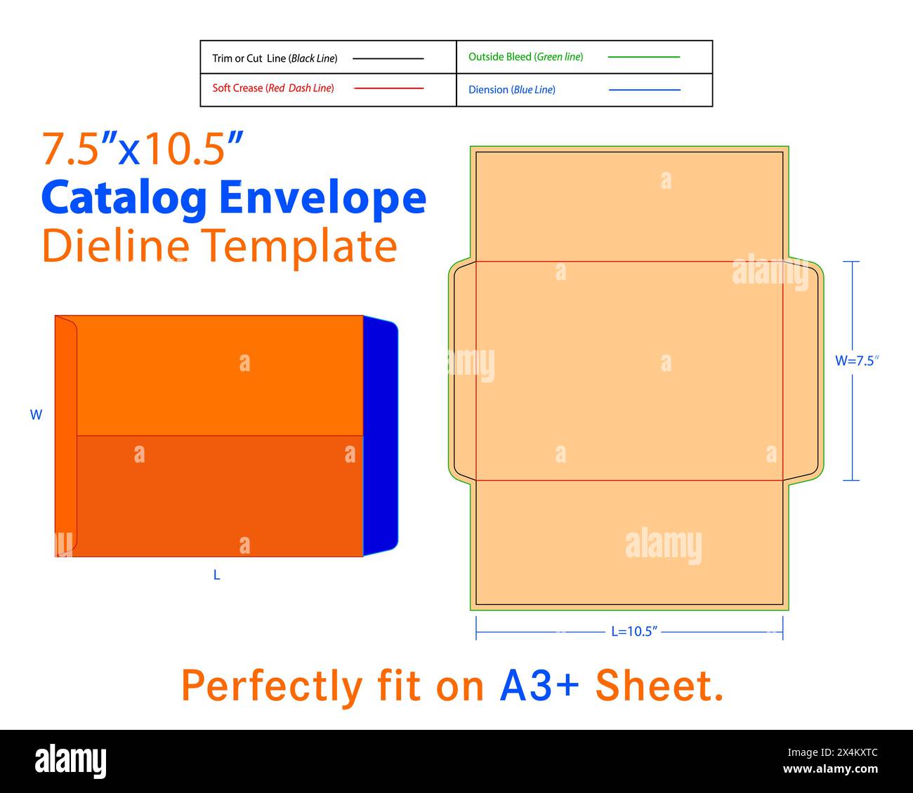 Catalogue Envelope W 7.5, L 10.5 Inches Die line Template. Catalogue