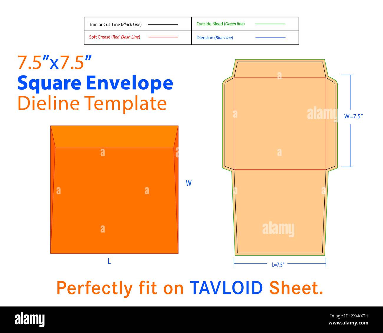 Square Envelope W 7.5, L 7.5 Inches Die line Template. Catalogue