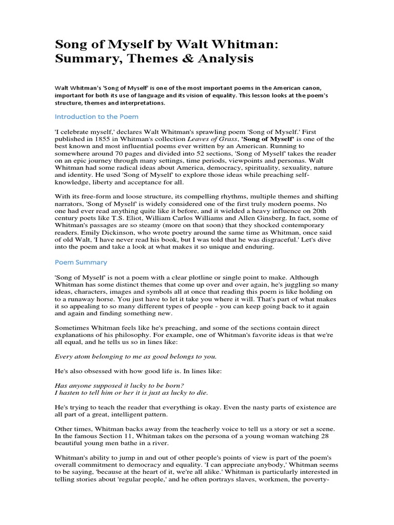 (DOC) Song of Myself Summary Summary (Masterpieces of American