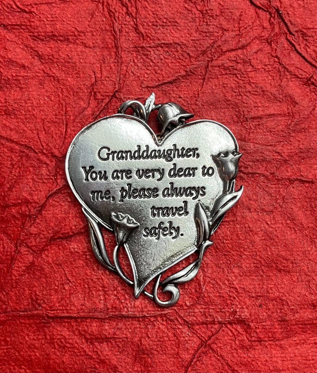 37/8 x 17/8 Inch Pewter Granddaughter "Drive Safely" Heart and Angel