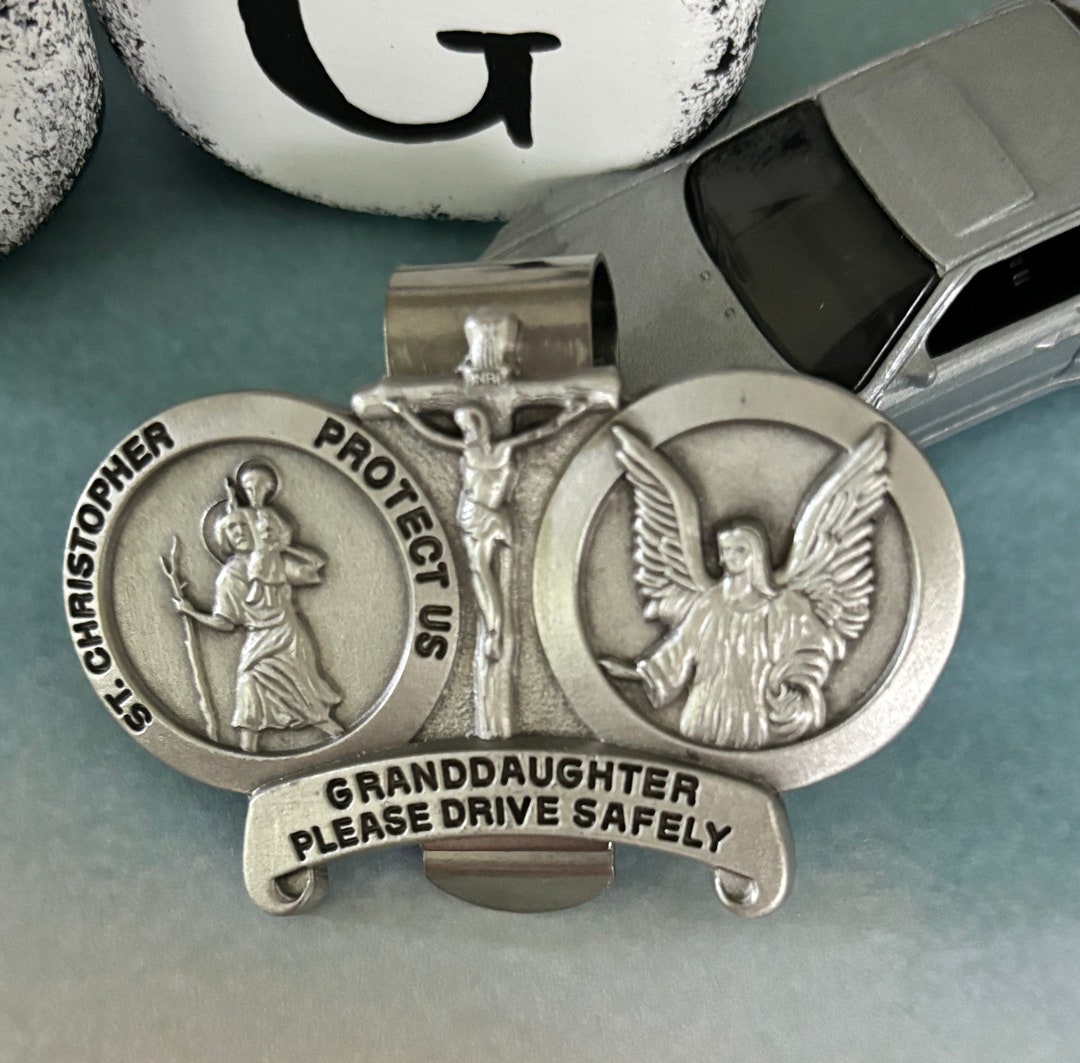 Granddaughter Travel Visor Clip Saint Christopher & Guardian Angel