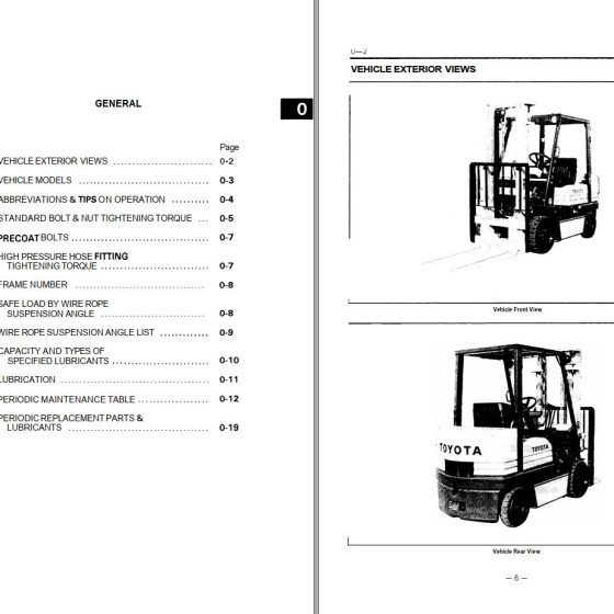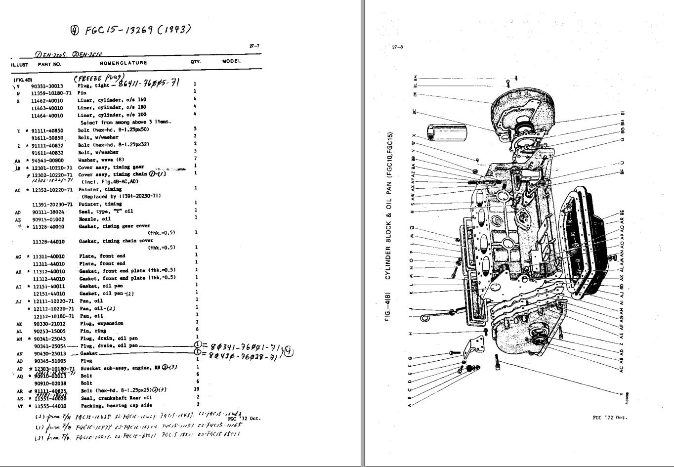 Toyota 5FGC10 to 5FGC15 Repair Manual & Parts Catalog