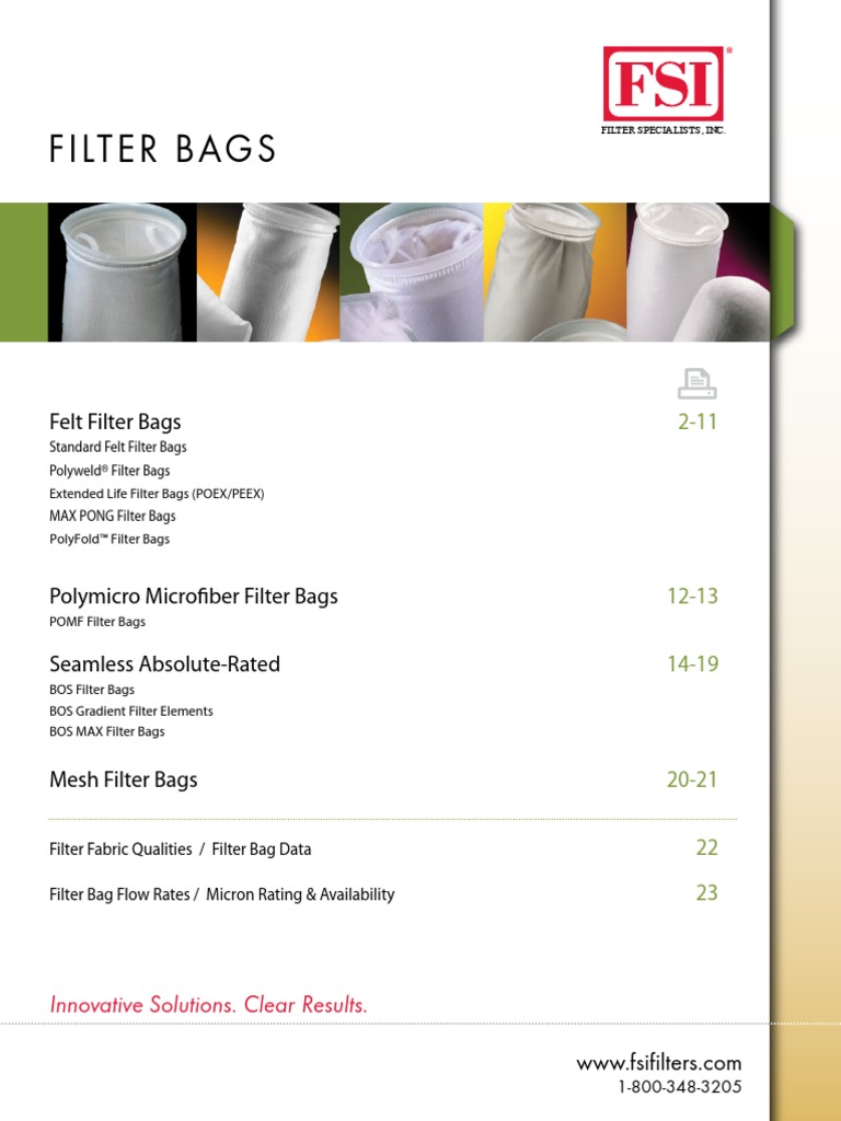 Fsi Catalog Filter Bags PDF Filtration Fibers