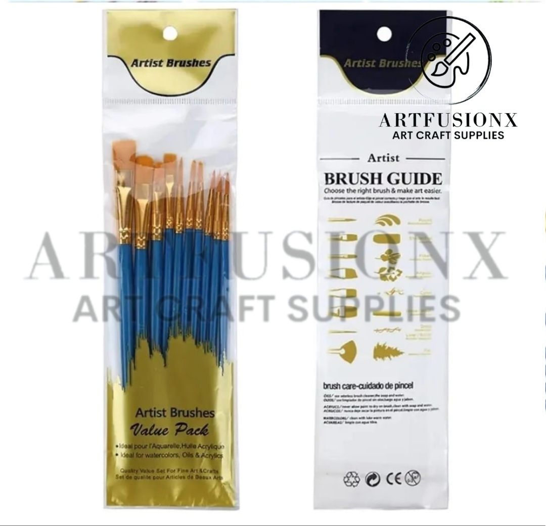 Pack of 10 Multi Shapes High Quality Nylon Professional Art Brush Set