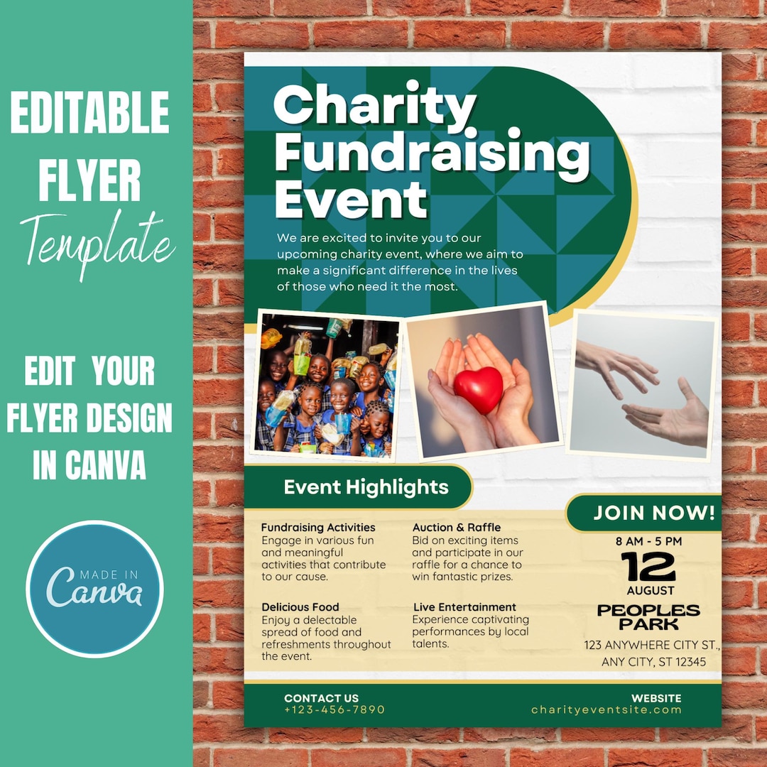 Editable Charity Event Flyer Template for Canva Perfect for