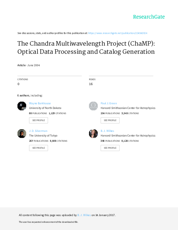 (PDF) The Chandra Multiwavelength Project (ChaMP) Optical Data