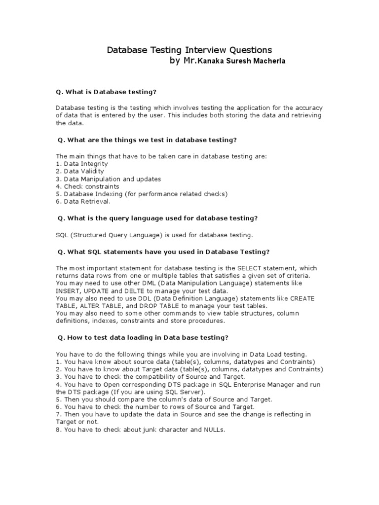 Database Testing Interview Questions & Answers guide 90 Frequently
