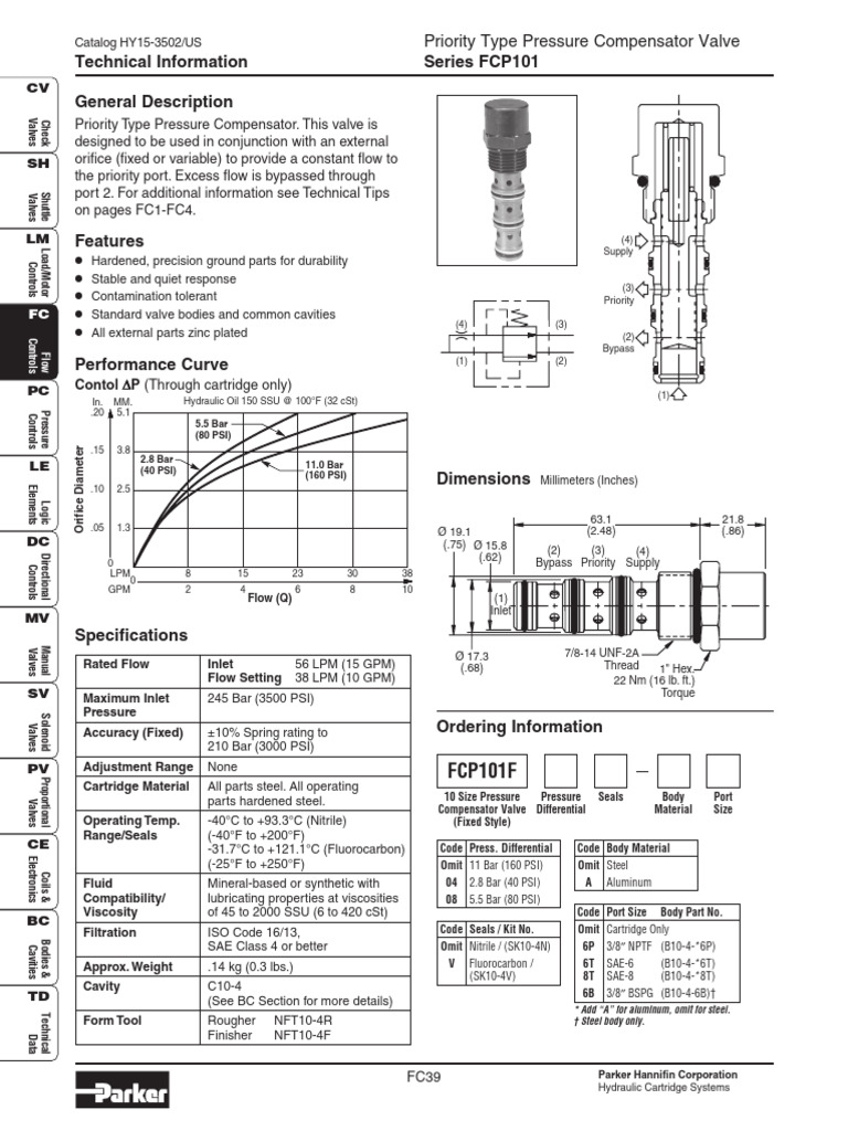 Hydraulic Cartridge System Parker HY153502US PDF Valve