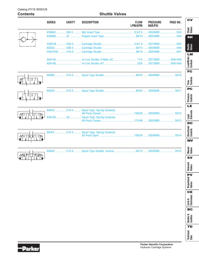 Shuttle Valves Catalog HY153502/US PDF Valve Viscosity