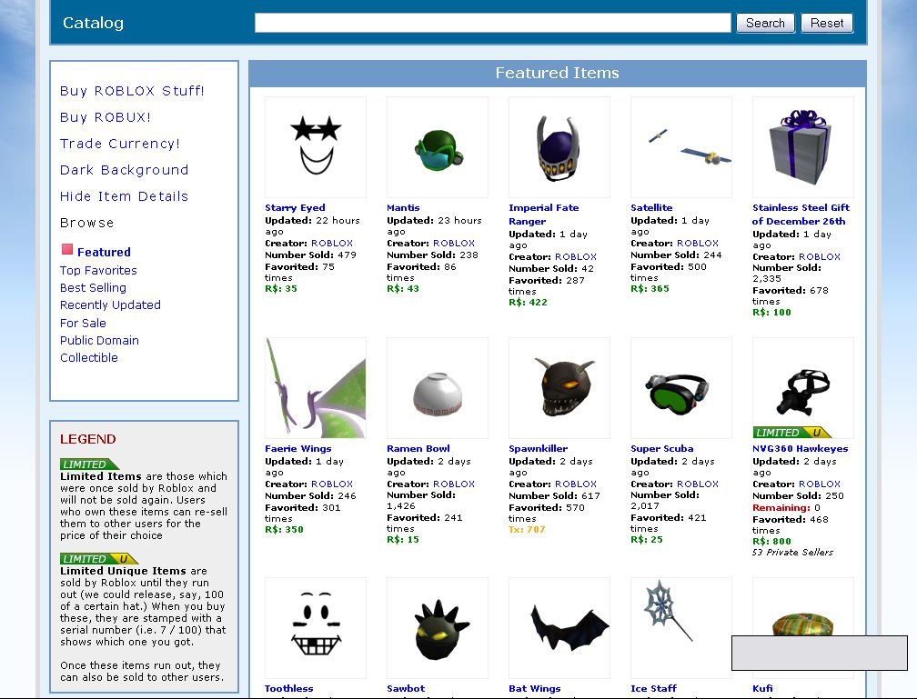 Roblox catalogue
