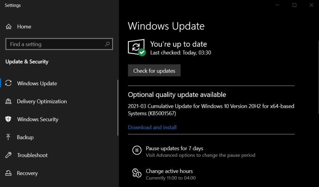 KB5001567 Cumulative Update for Windows 10 Version 20H2 March 2021