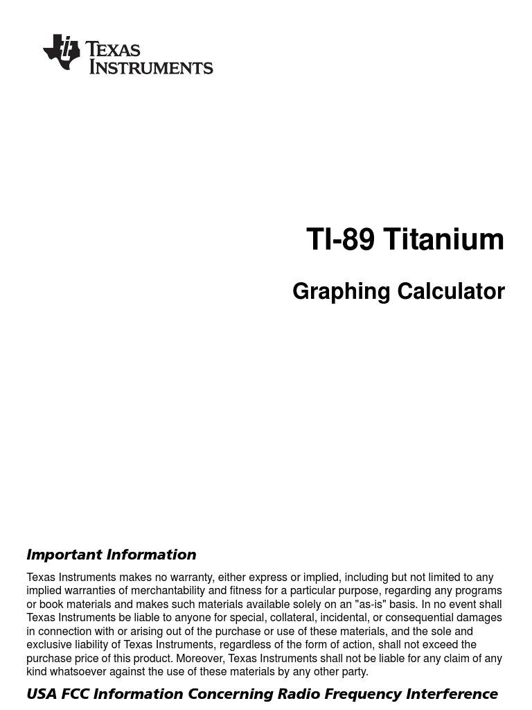 TEXAS INSTRUMENTS TI89 TITANIUM USER MANUAL Pdf Download ManualsLib